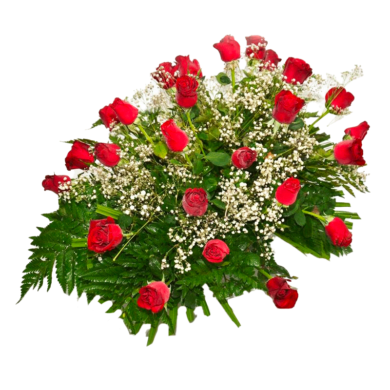 Centro de flores sencillo de una pastilla realizado con 20 rosas frescas y paniculata.
